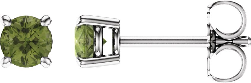 14K White 4 mm Round Peridot Earrings