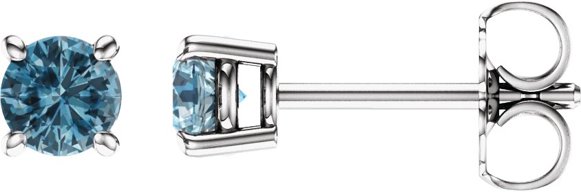 14K White 4 mm Round Sky Blue Topaz Earrings