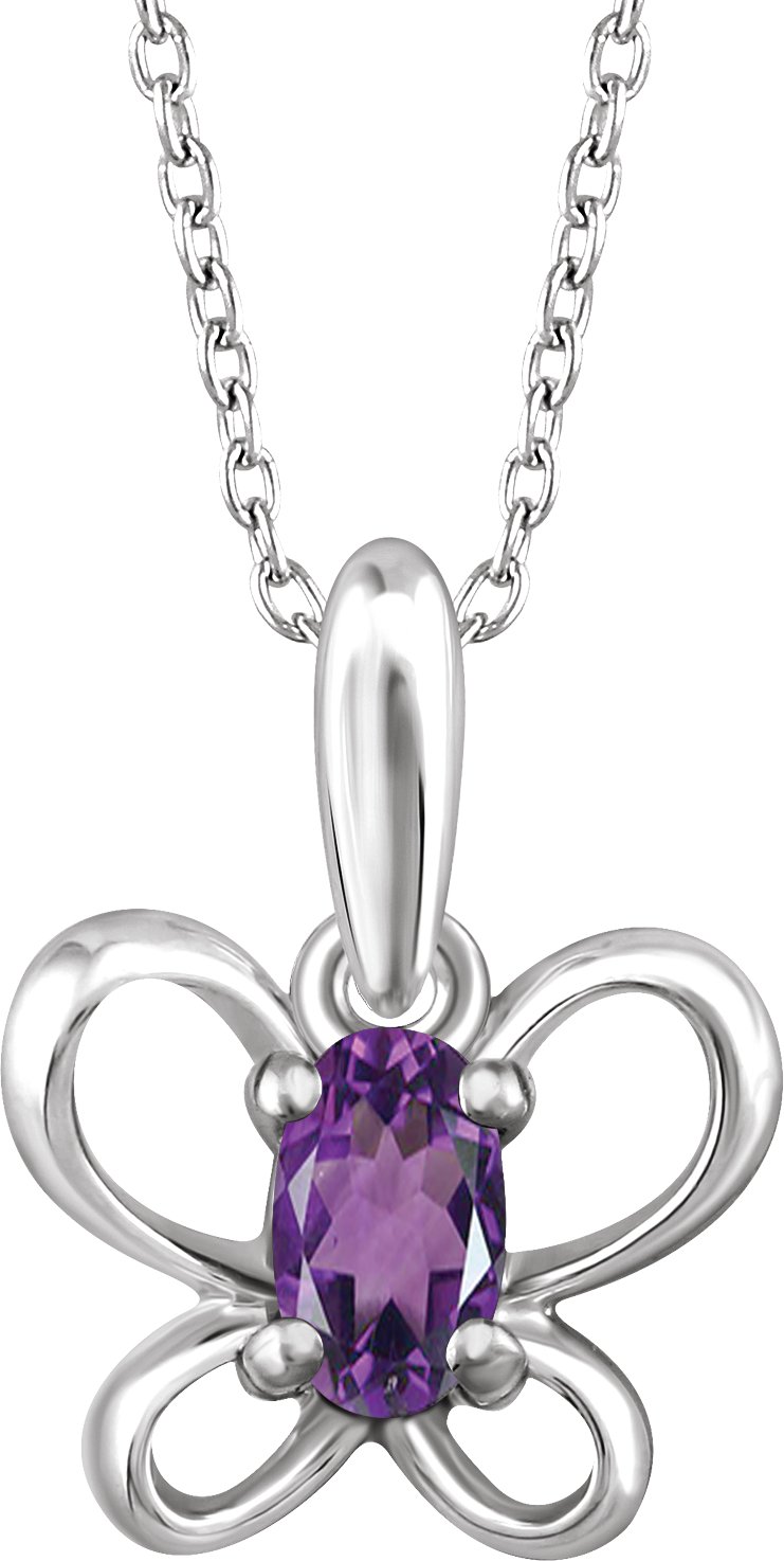 14K White 4x3 mm Oval February Youth Butterfly Birthstone 15 inch Necklace