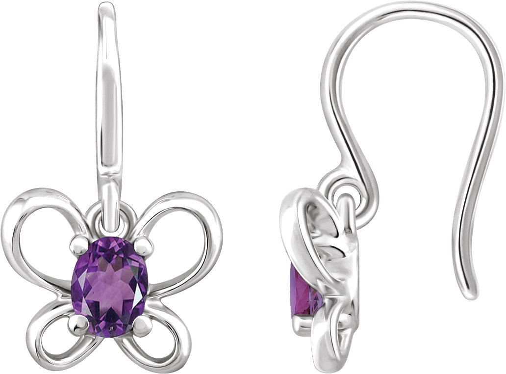 14K White 4x3 mm Oval February Youth Butterfly Birthstone Earrings