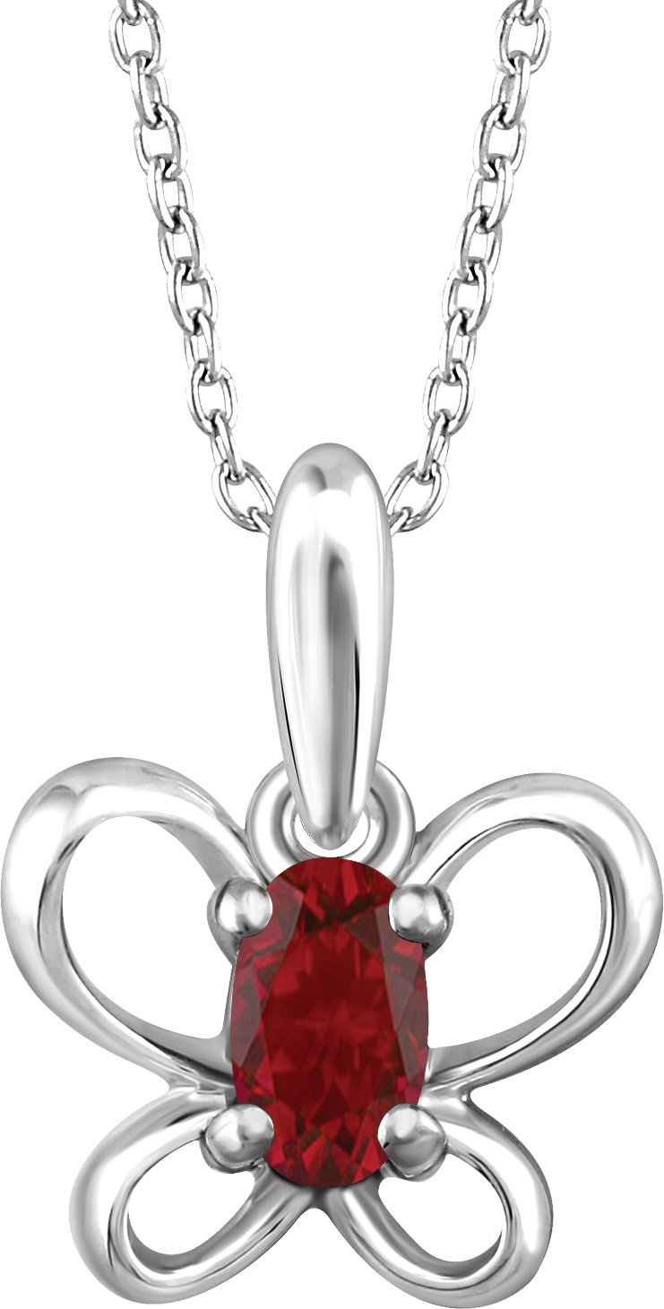 14K White 4x3 mm Oval January Youth Butterfly Birthstone 15 inch Necklace