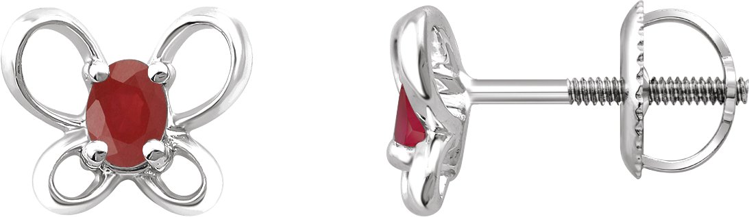 14K White 4x3 mm Oval July Youth Butterfly Birthstone Earrings