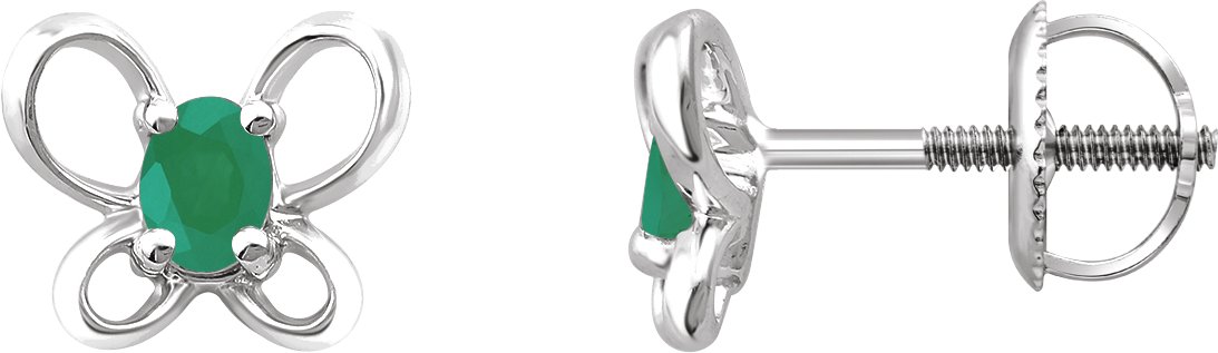 14K White 4x3 mm Oval May Youth Butterfly Birthstone Earrings