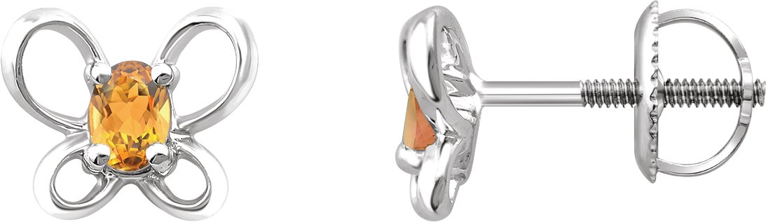 14K White 4x3 mm Oval November Youth Butterfly Birthstone Earrings
