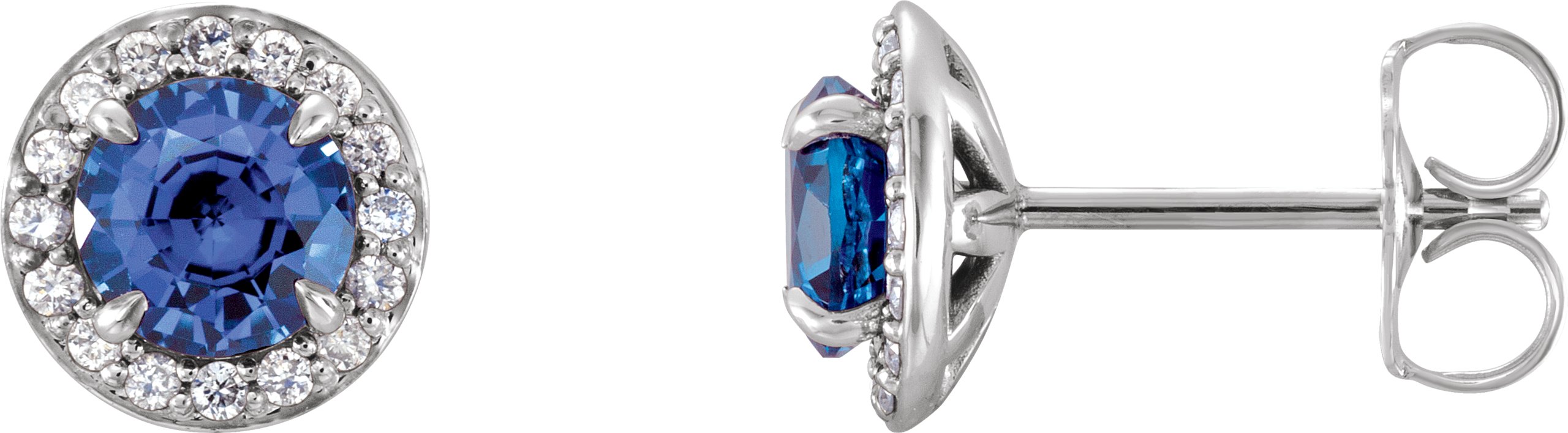 14K White 5 mm Round Blue Sapphire & 1/8 CTW Diamond Earrings