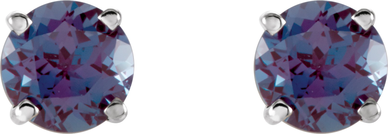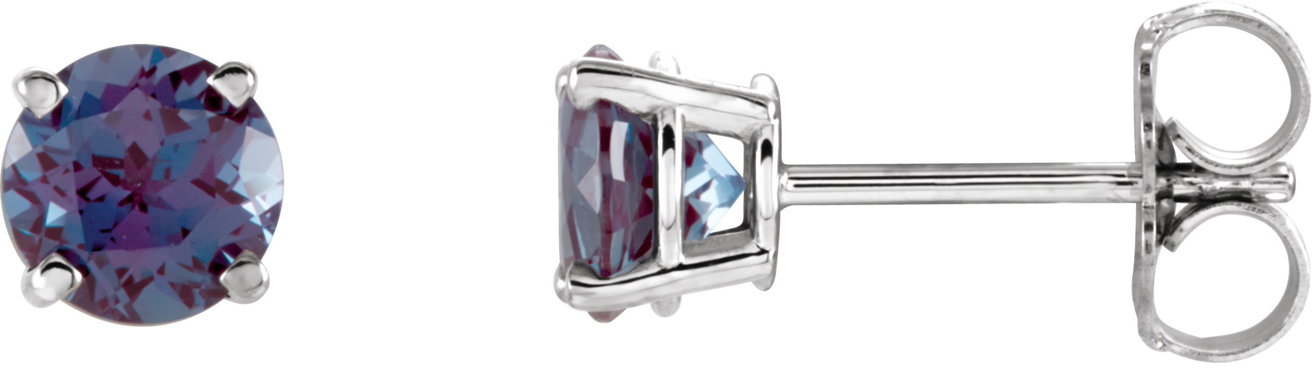 14K White 5 mm Round Chatham Created Alexandrite Earrings