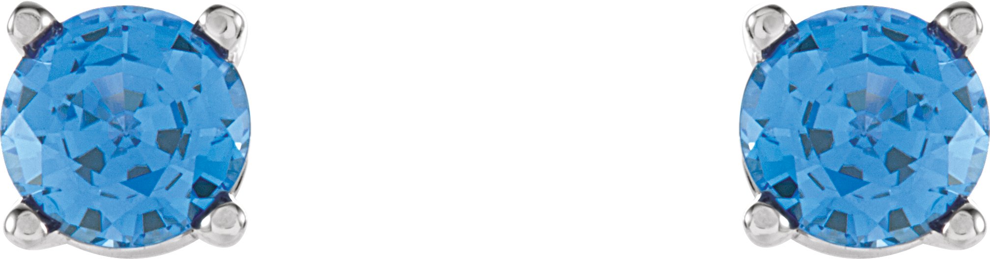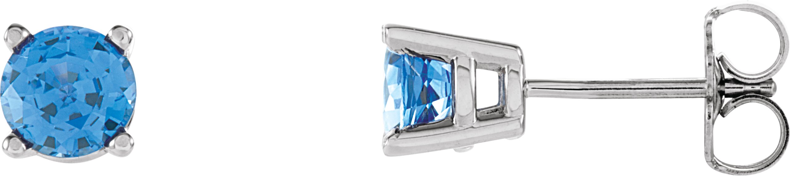 14K White 5 mm Round Chatham Created Blue Sapphire Friction Post Stud Earrings