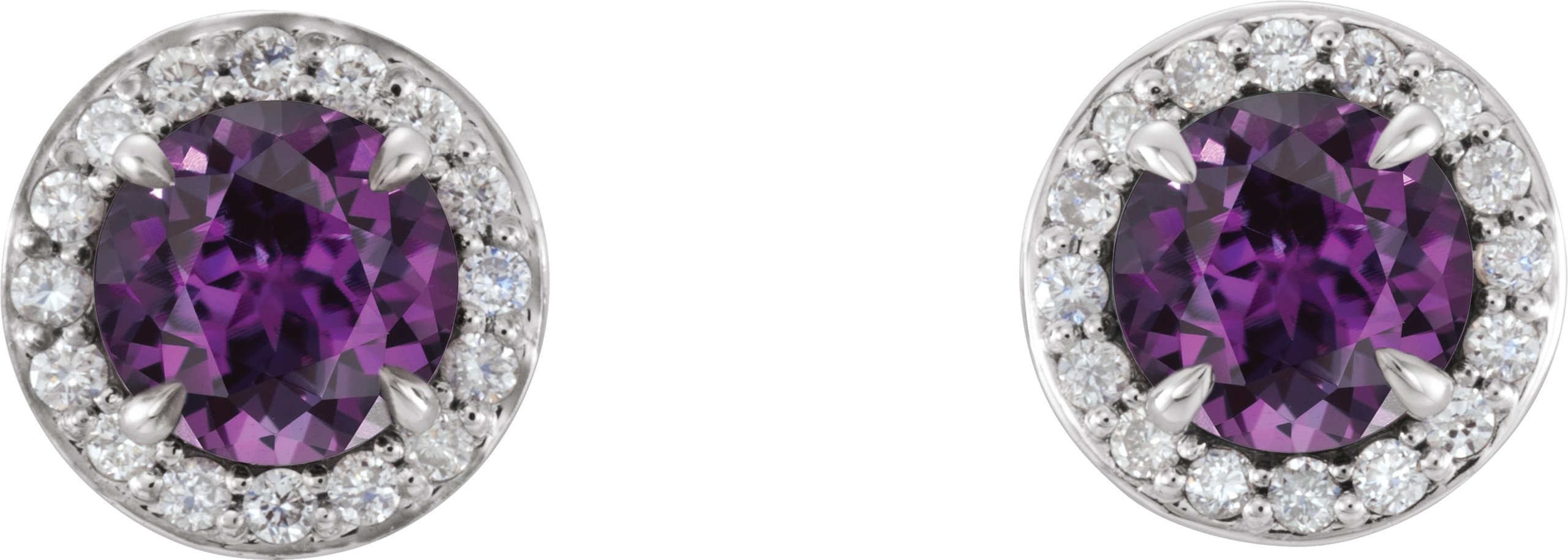 14K White 5 mm Round Chatham Lab Created Alexandrite & 1/8 CTW Diamond Earrings