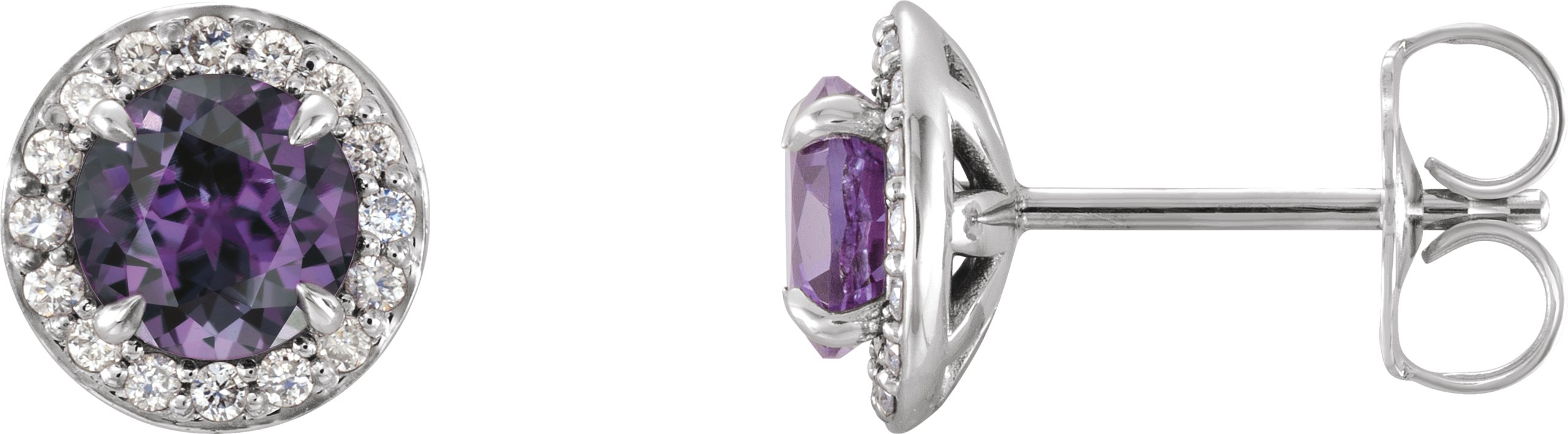 Description: Chatham Lab-Created Alexandrite And 1/8 Ctw Diamond Earrings