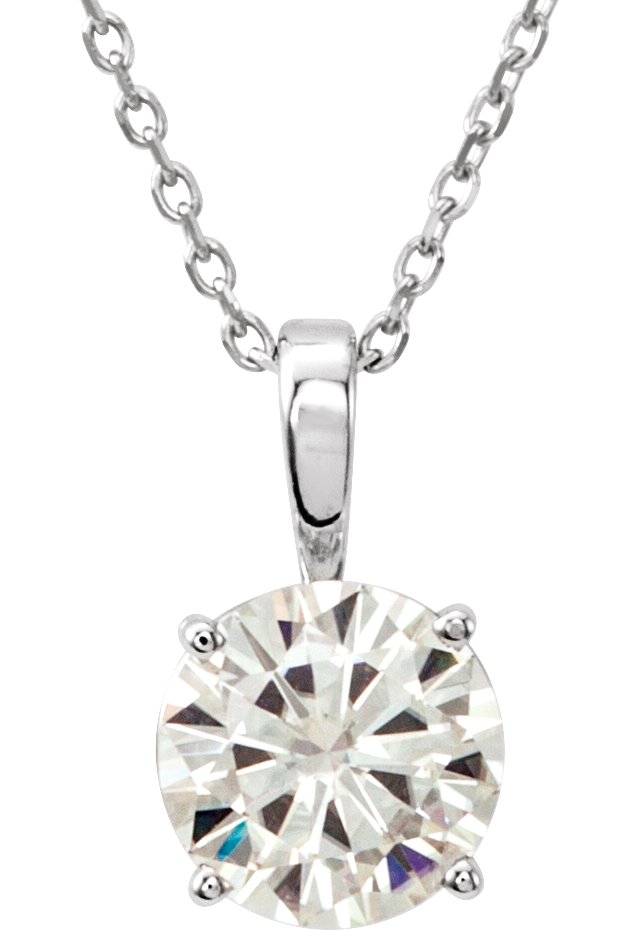 14K White 5 mm Round Forever One™ Moissanite 18 inch Necklace