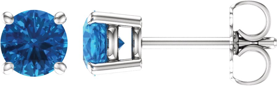 14K White 5 mm Round Swiss Blue Topaz Earrings