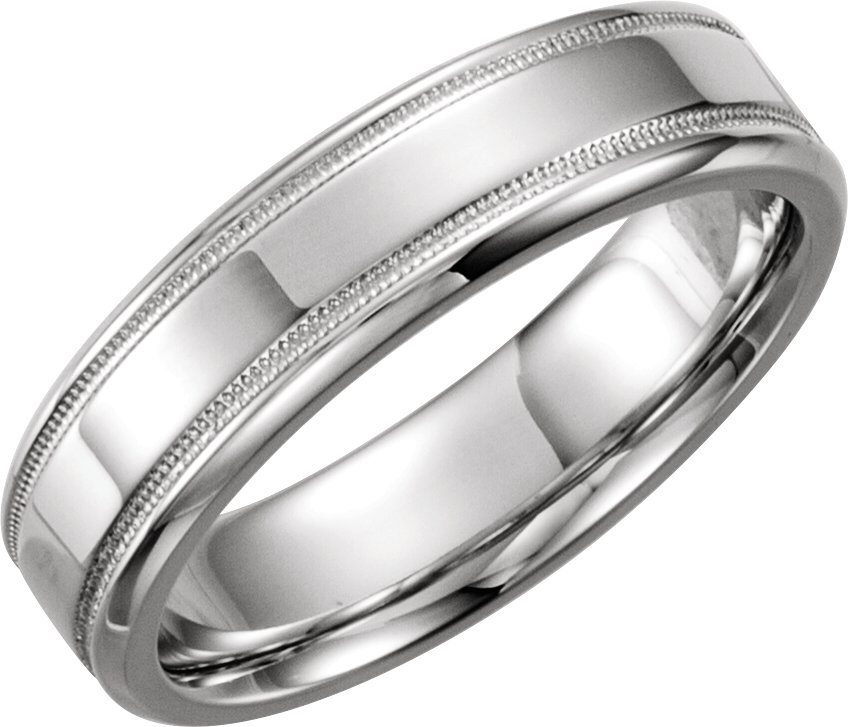 14K White 6 mm Milgrain Flat Edge Band Size 11.5