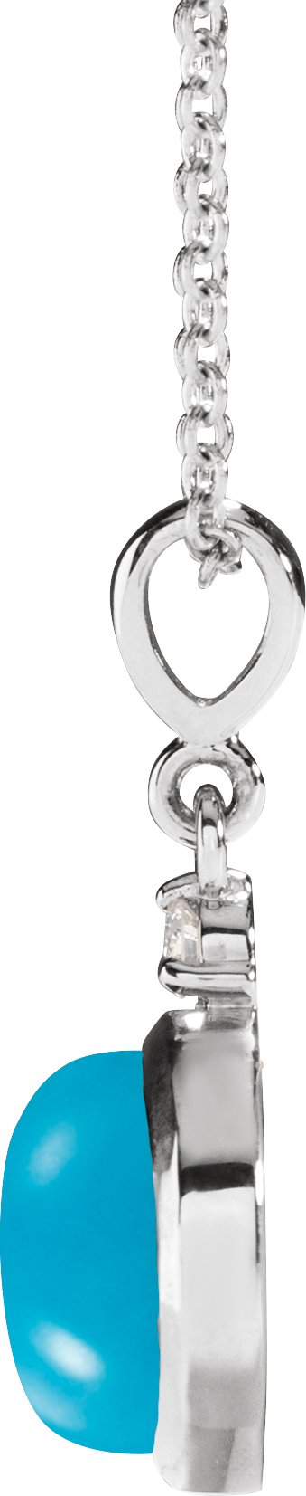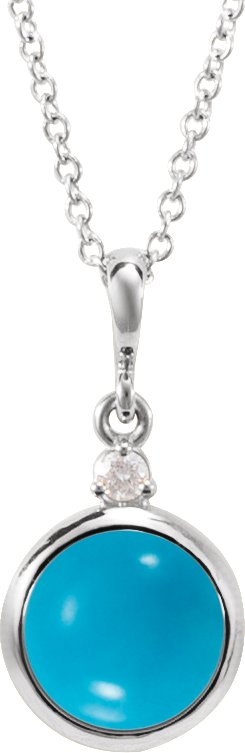 14K White 6 mm Natural Turquoise & .03 CT Natural Diamond Cabochon 16-18" Necklace
