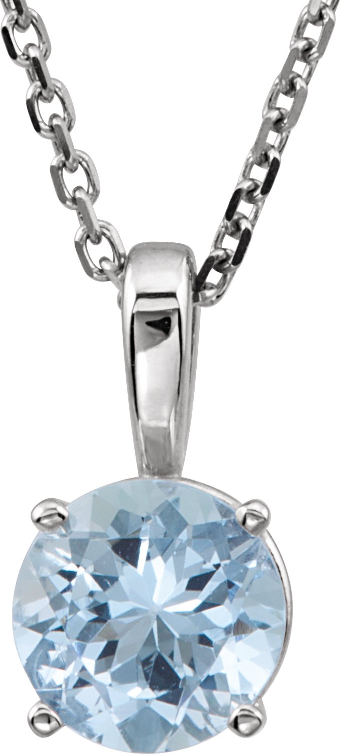14K White 6 mm Round March Genuine Aquamarine Youth Birthstone 14 inch Necklace