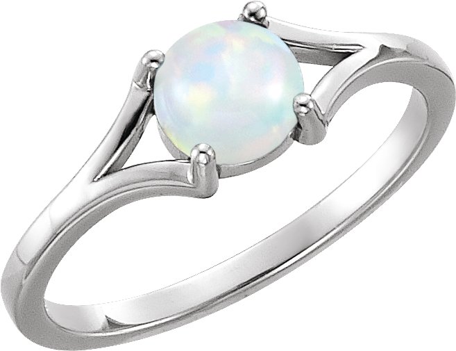 14K White 6 mm Round Opal Cabochon Ring
