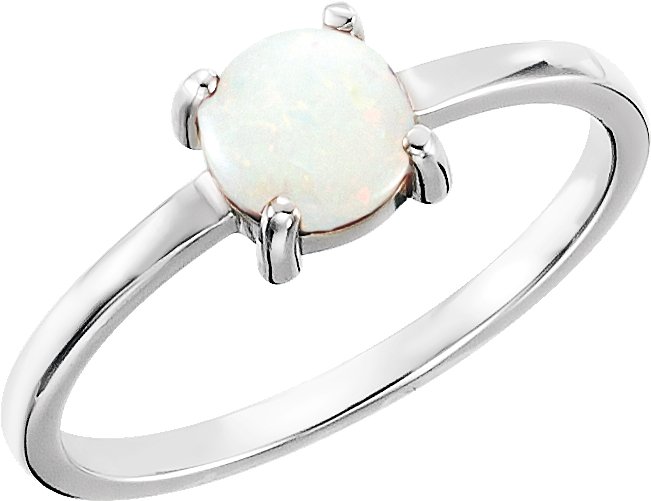 14K White 6 mm Round Opal Cabochon Ring