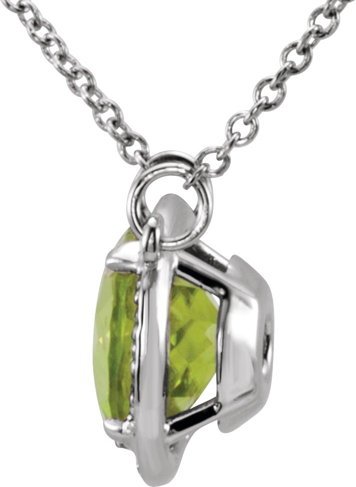 14K White 6 mm Round Peridot and .04 CTW Diamond 16 inch Necklace