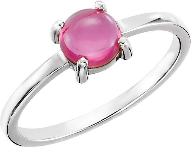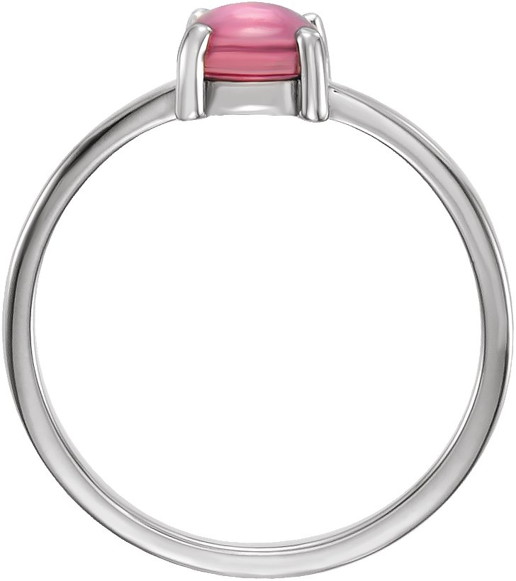 14K White 6 mm Round Pink Tourmaline Cabochon Ring