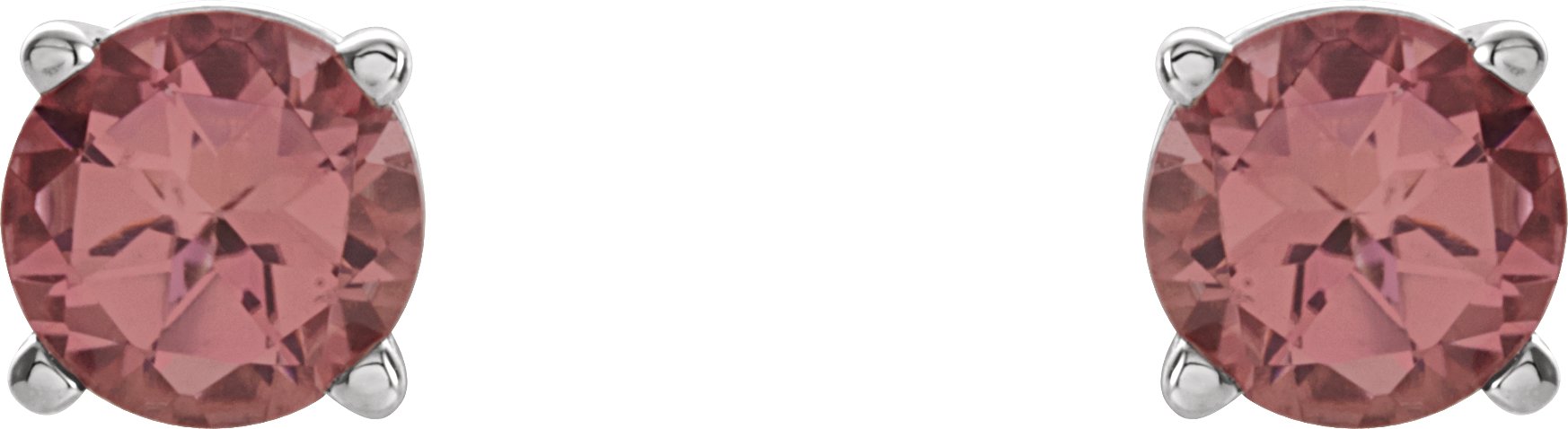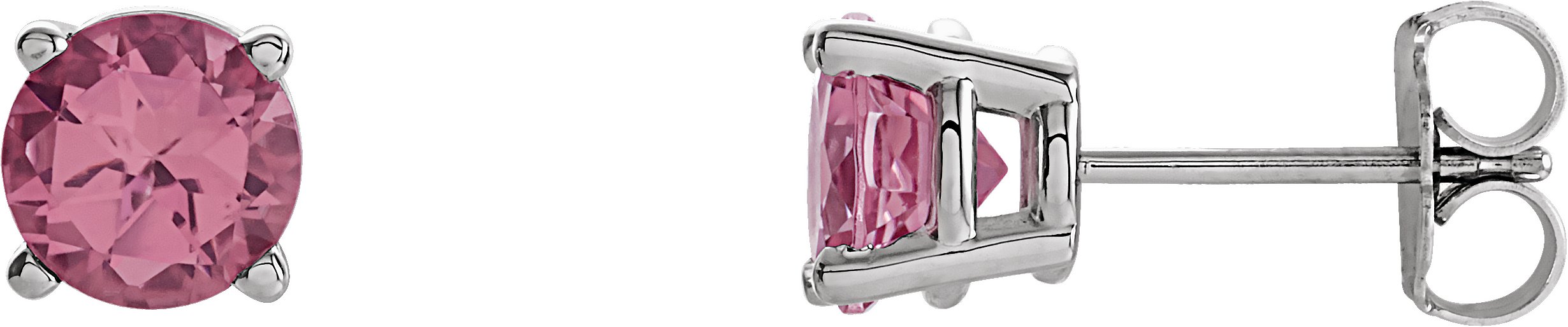 14K White 6 mm Round Pink Tourmaline Friction Post Stud Earrings
