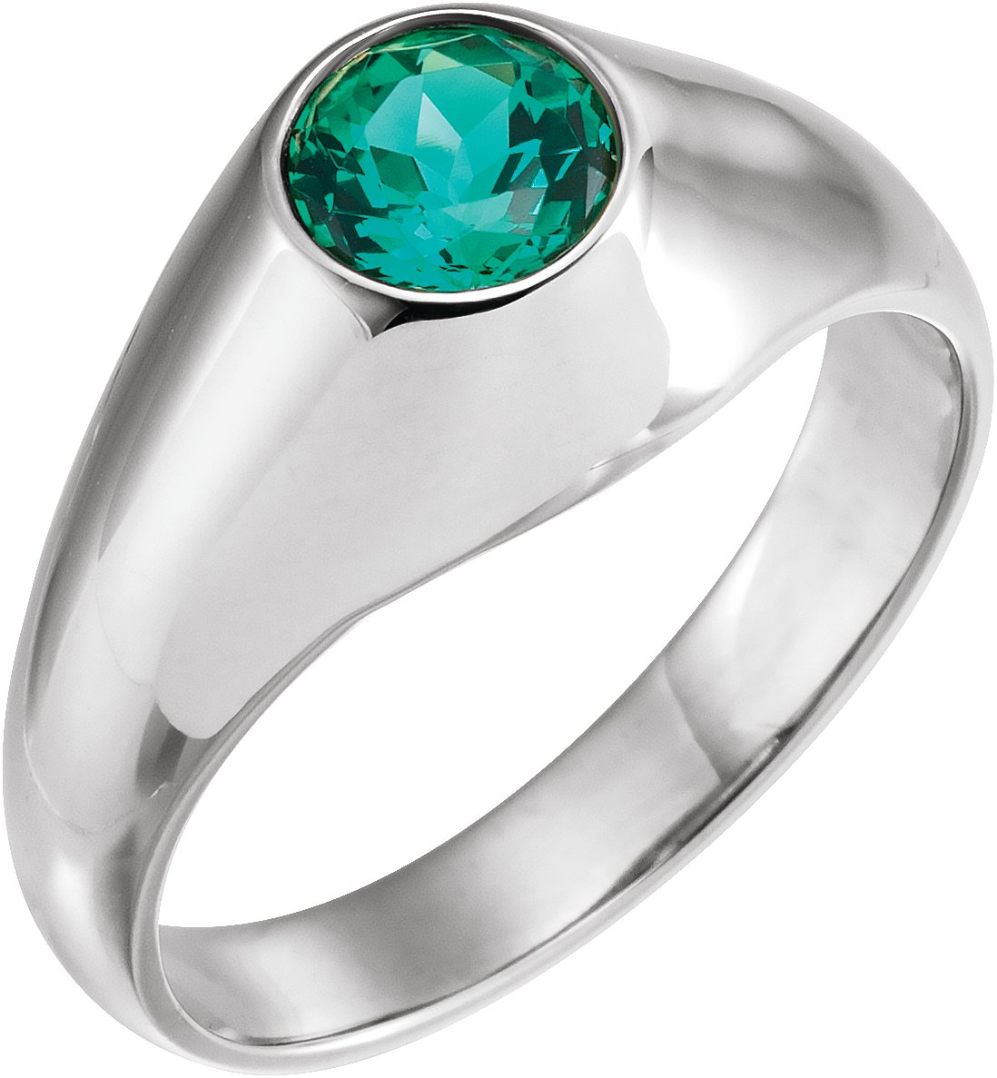 14K White 6.5 mm Round Chatham Lab Created Emerald Ring