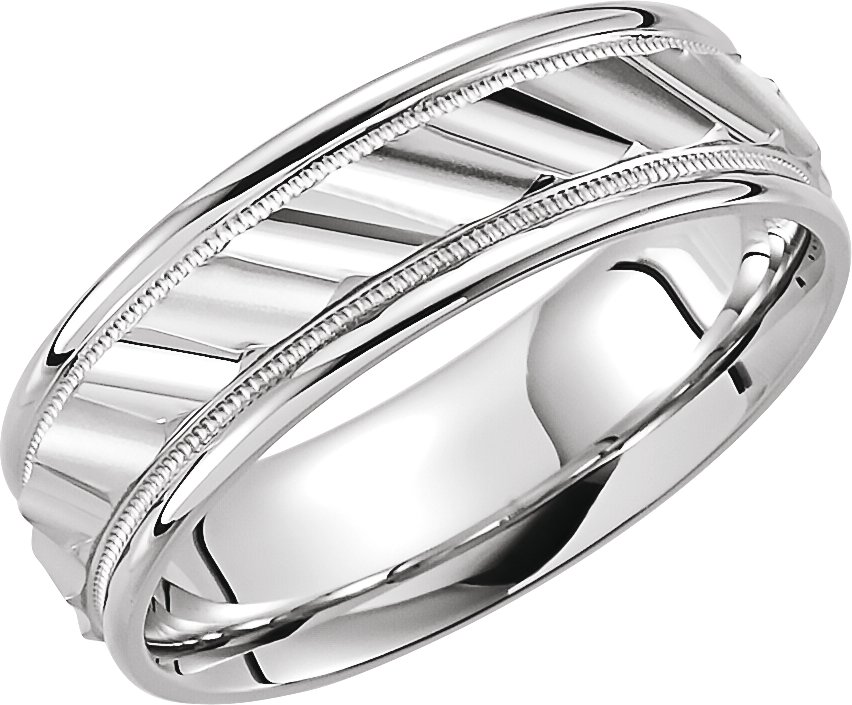 14K White 6.75 mm Ridged Band with Milgrain Size 4.5 Ref 141019