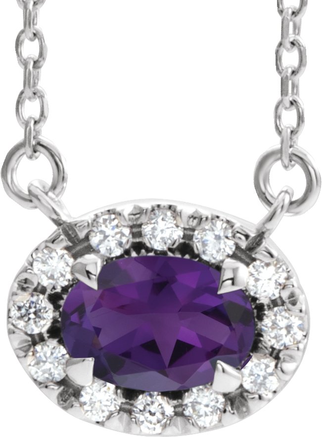 14K White 6x4 mm Oval Amethyst & 1/10 CTW Diamond 18 inch Necklace