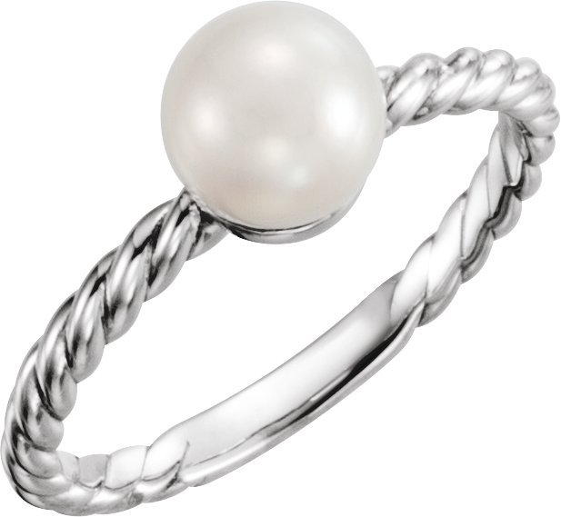 14K White 7.5 8.0 mm Cultured Freshwater Pearl Ring