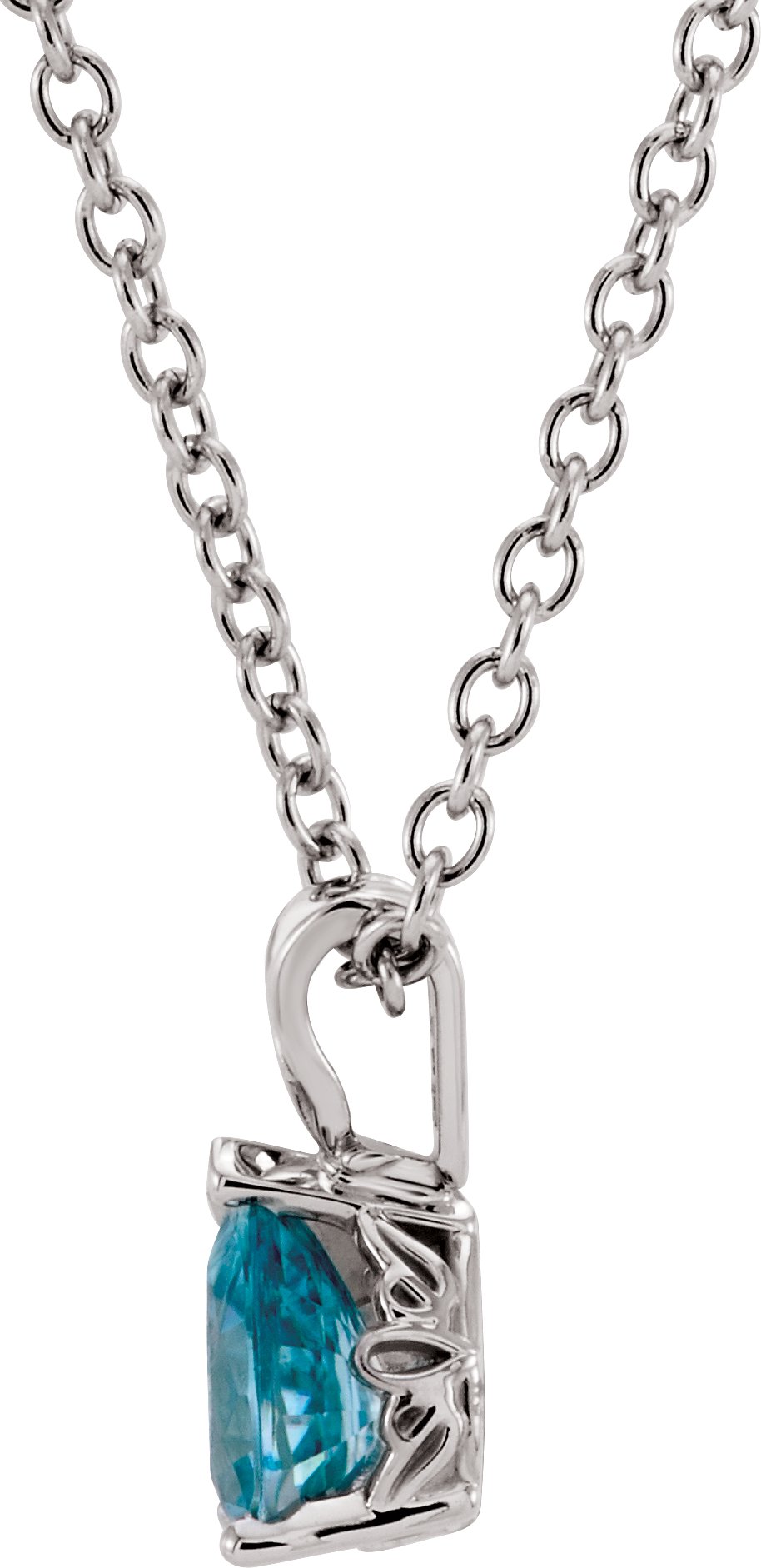 14K White 7x5 mm Blue Zircon 18 inch Necklace