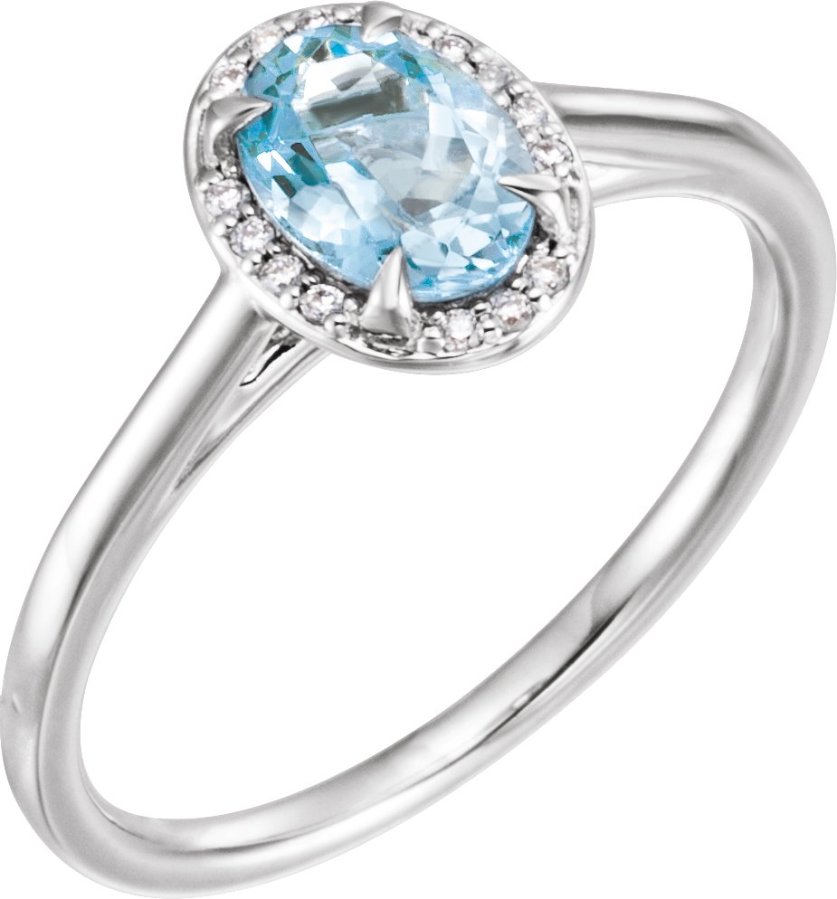 14K White 7x5 mm Oval Aquamarine & .04 CTW Diamond Ring