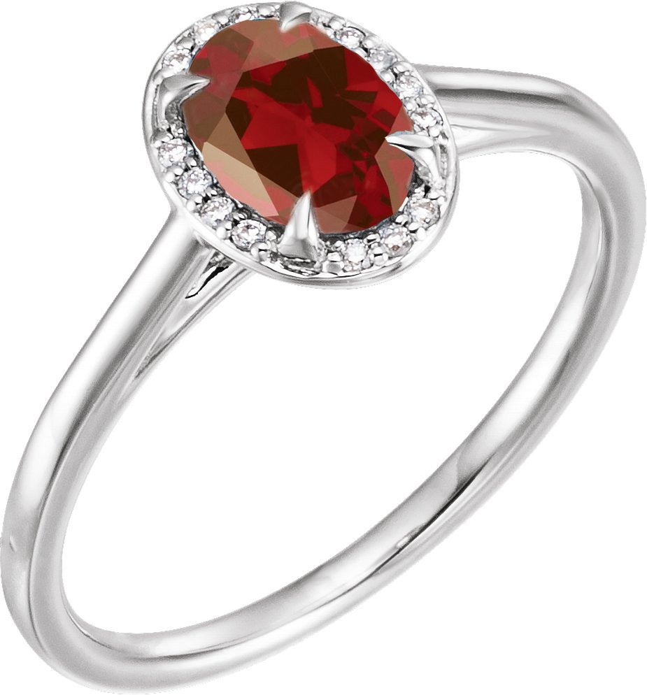 14K White 7x5 mm Oval Mozambique Garnet & .04 CTW Diamond Ring