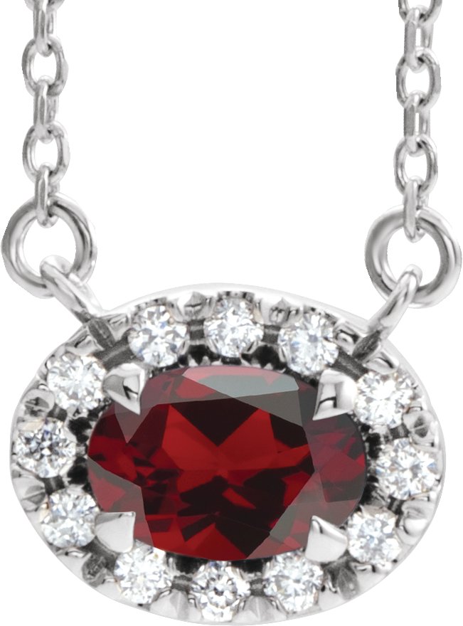14K White 7x5 mm Oval Mozambique Garnet & 1/6 CTW Diamond 18 inch Necklace