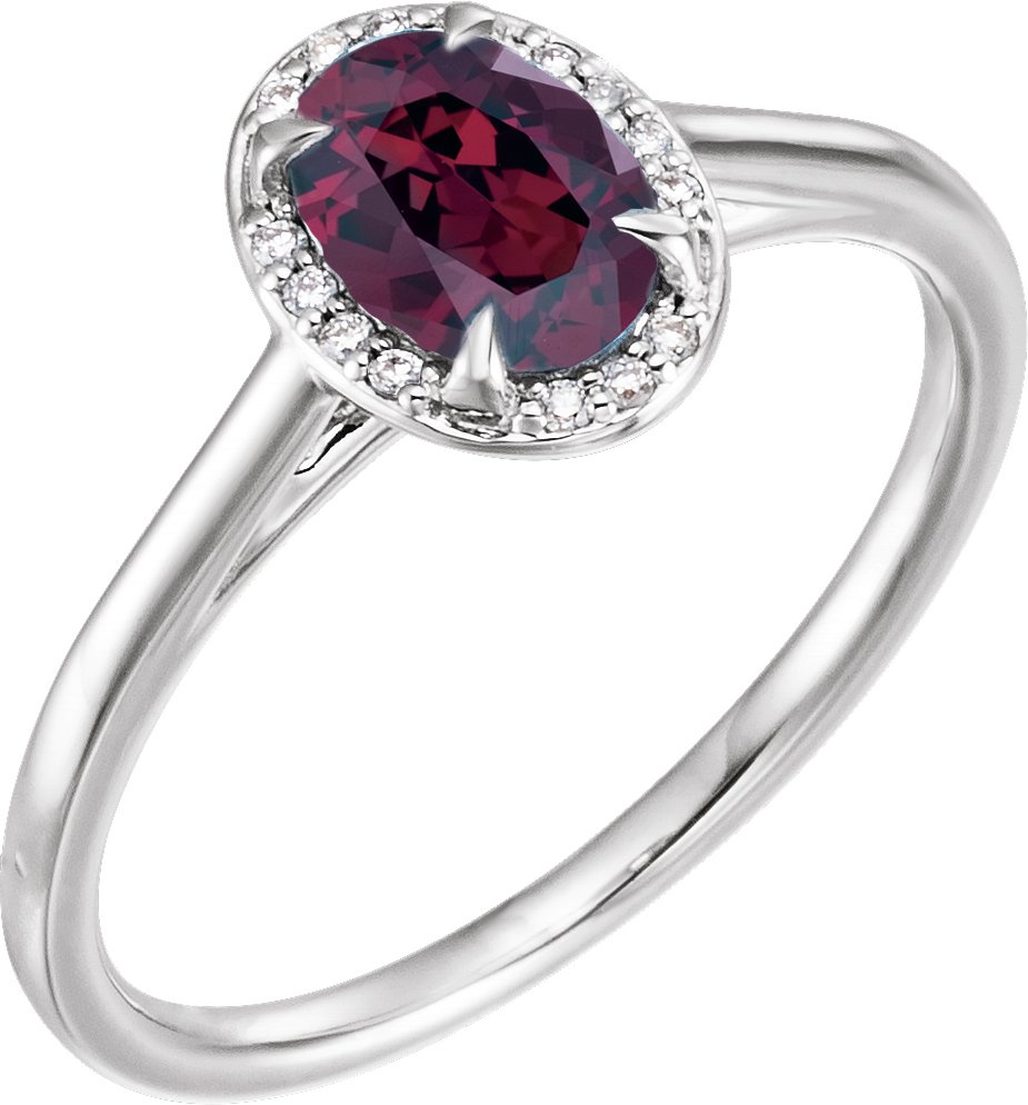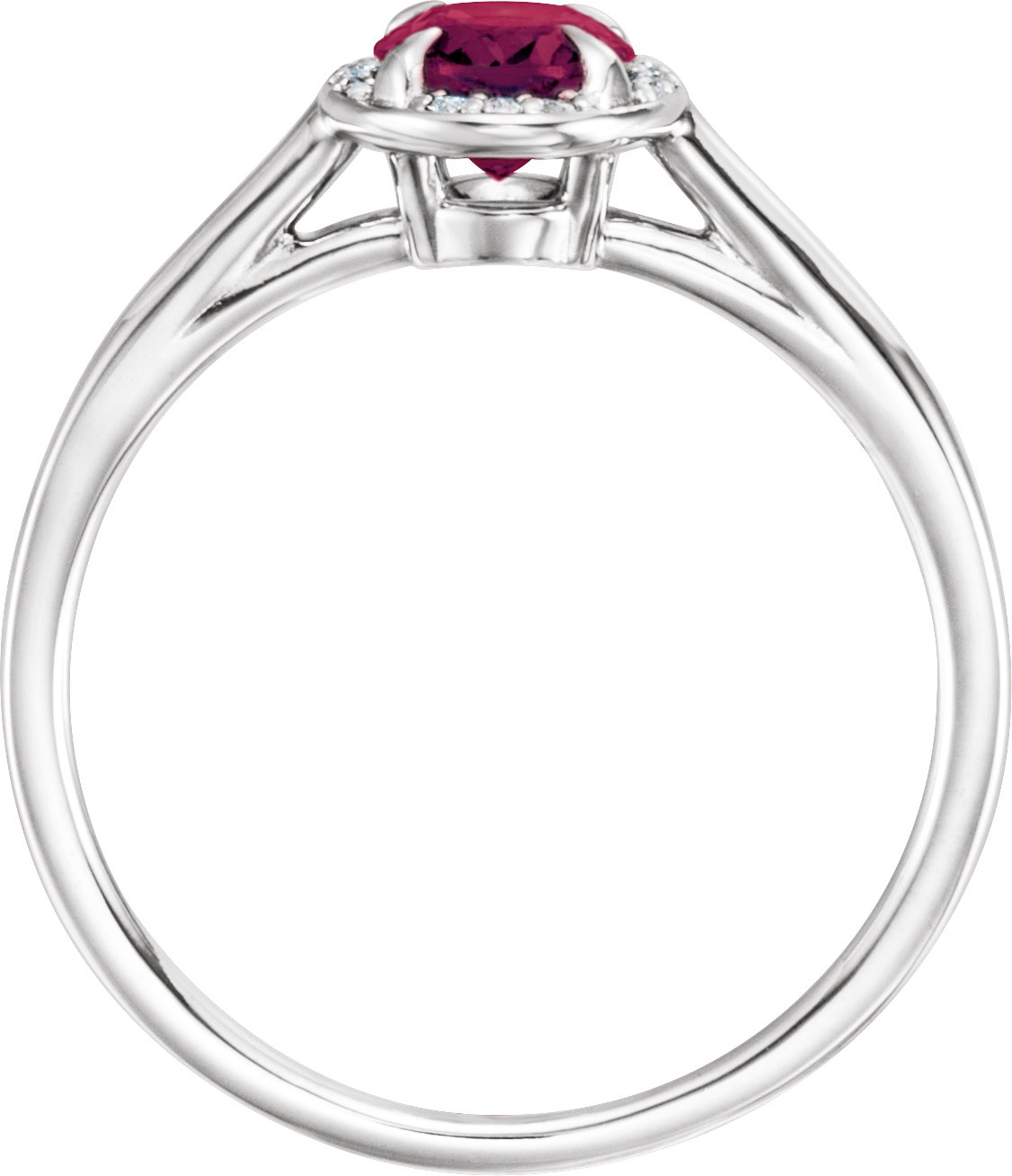14K White 7x5 mm Oval Rhodolite Garnet & .04 CTW Diamond Ring