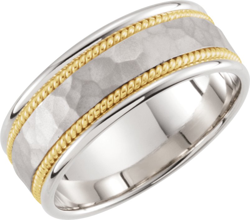 Description: Comfort-Fit Rope Design Band With Hammer Finish