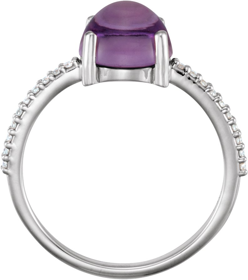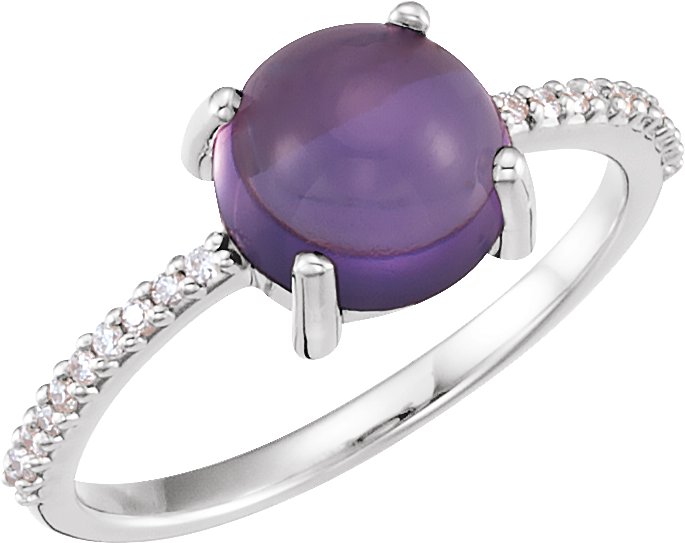 14K White 8 mm Round Cabochon Amethyst & 1/10 CTW Diamond Ring