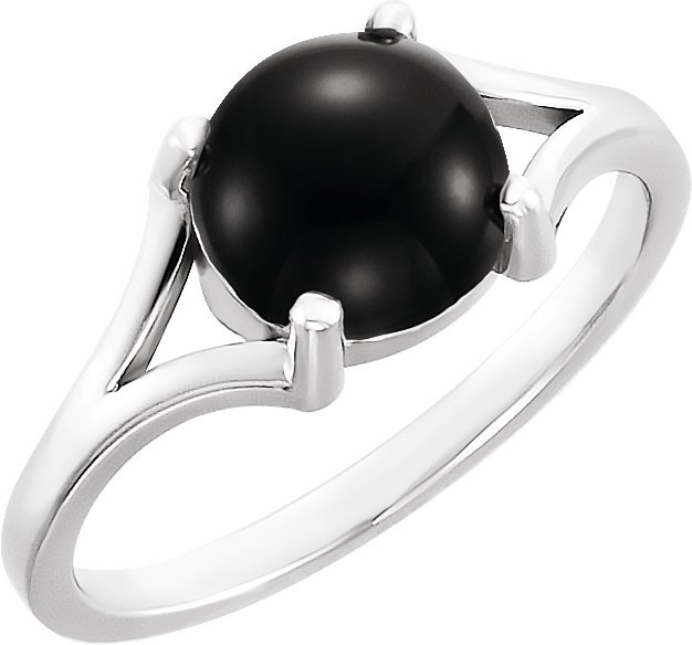 14K White 8 mm Round Onyx Cabochon Ring