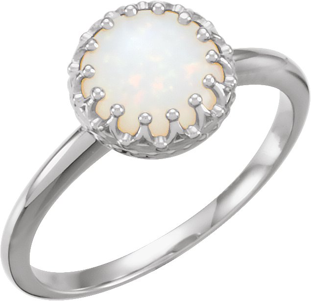 14K White 8 mm Round Opal Ring