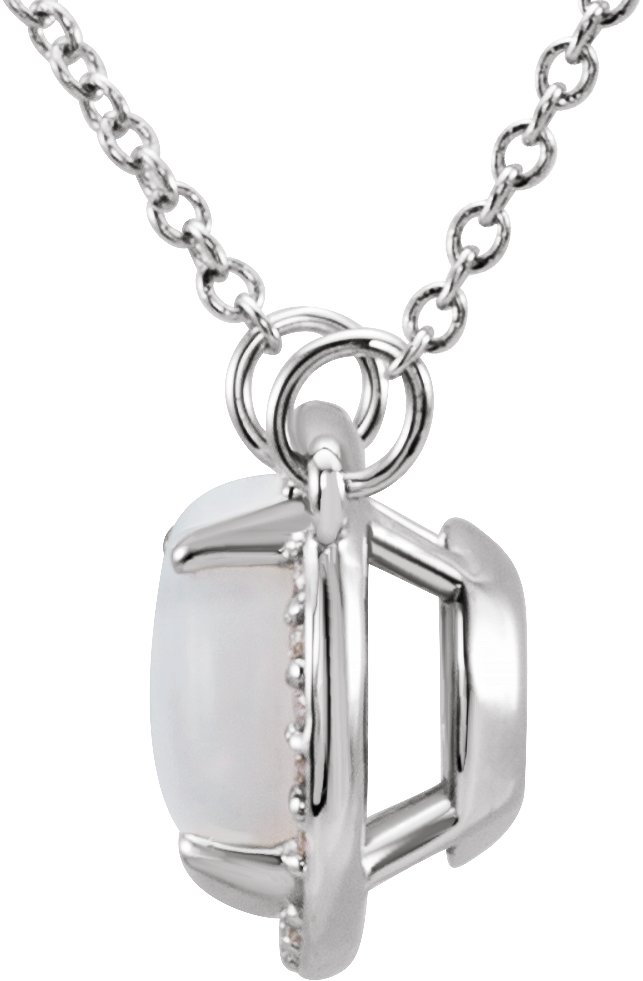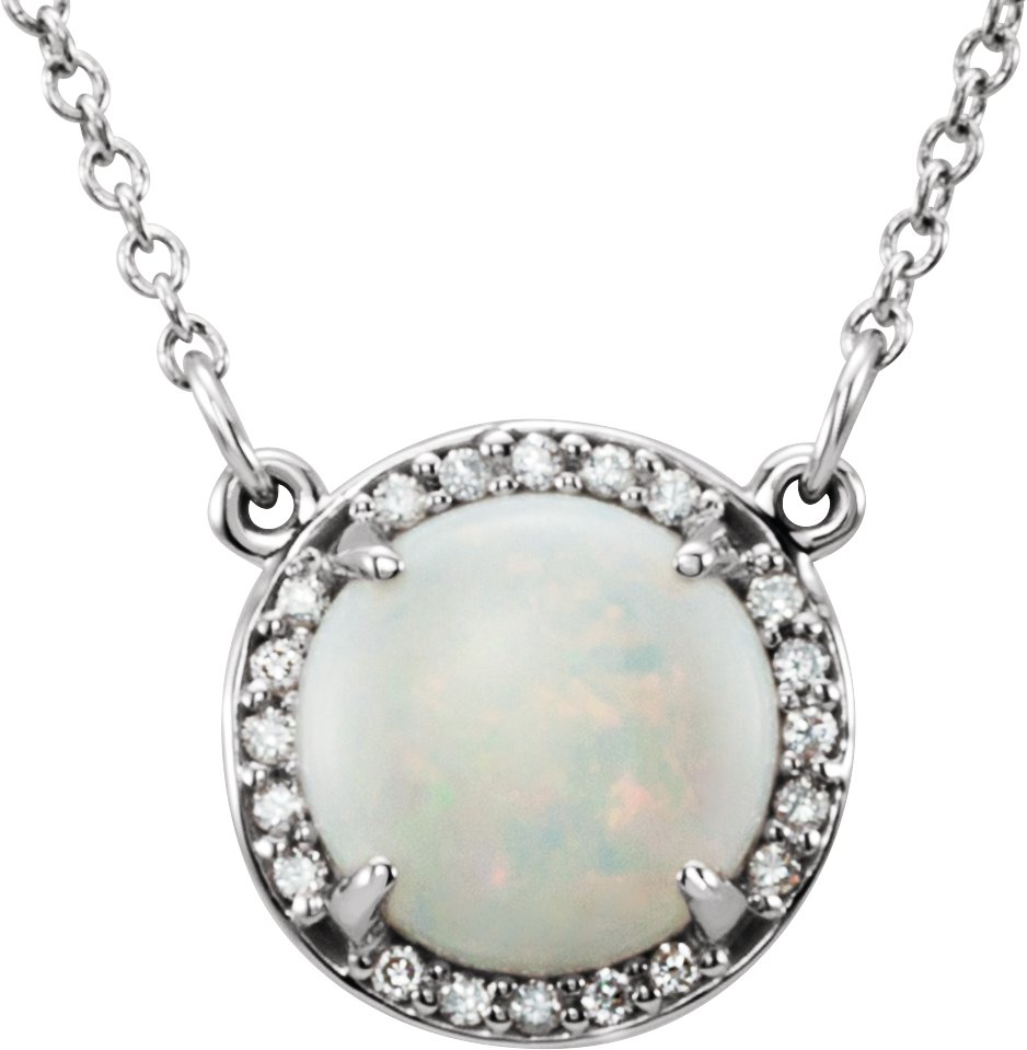 14K White 8 mm Round White Opal and .05 CTW Diamond 16 inch Necklace