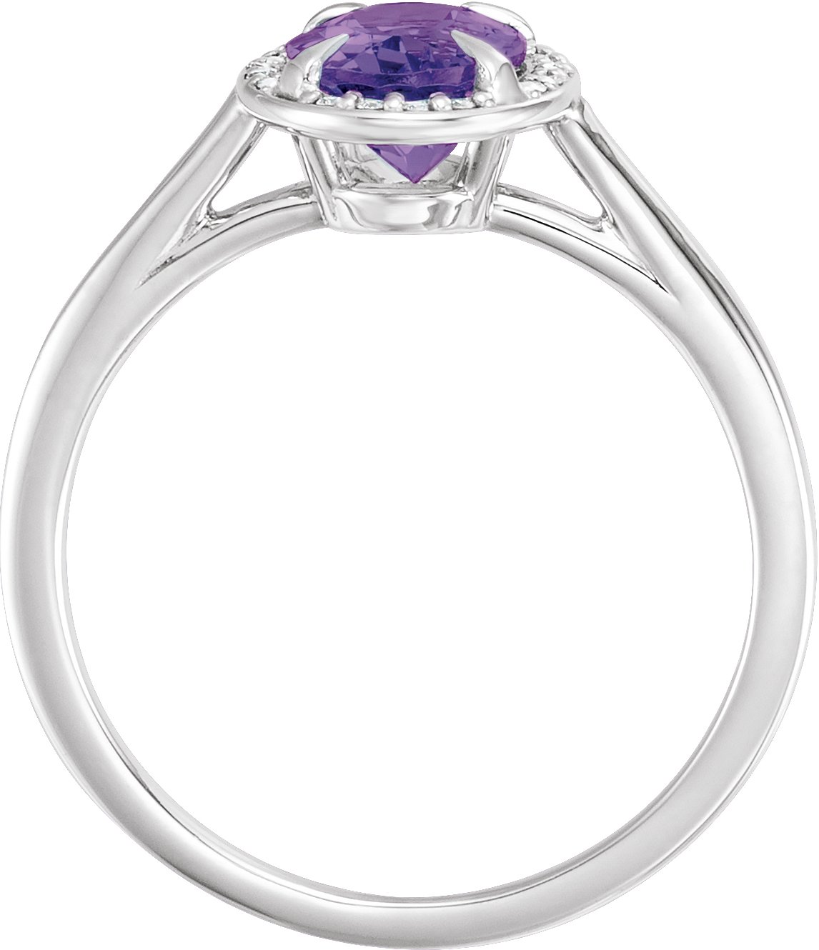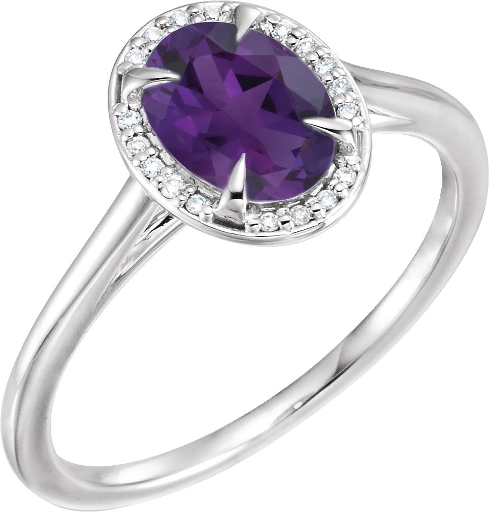 14K White 8x6 mm Oval Amethyst & .06 CTW Diamond Ring