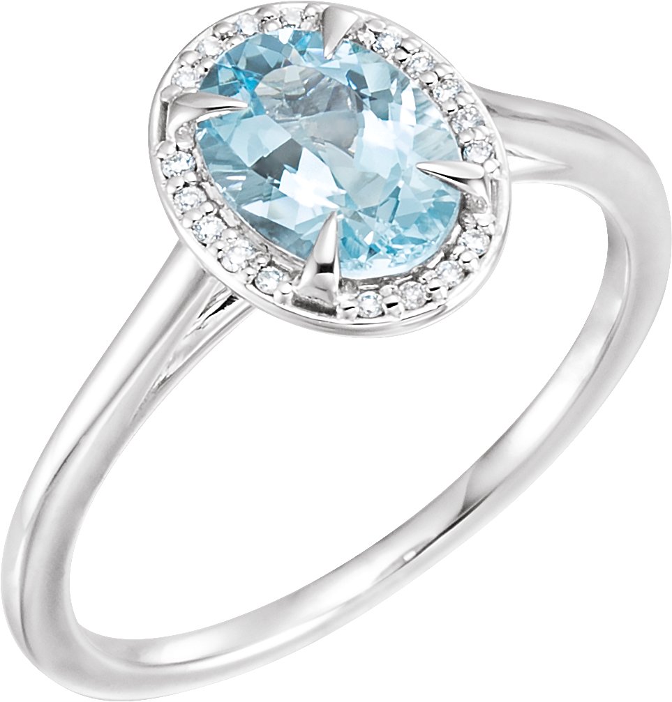 14K White 8x6 mm Oval Aquamarine & .06 CTW Diamond Ring