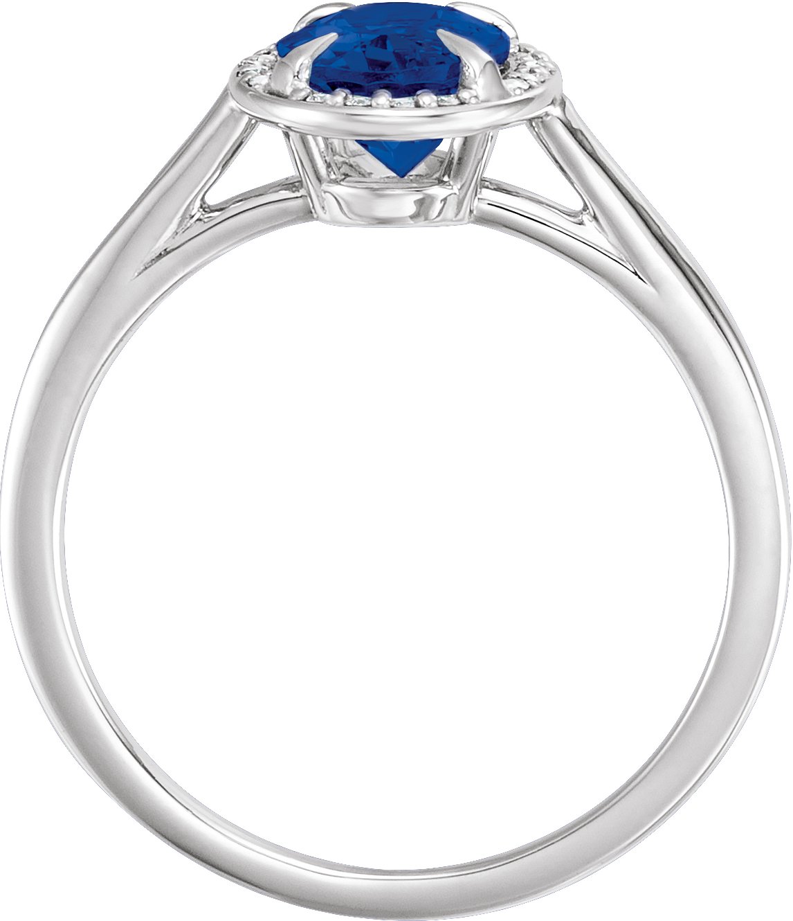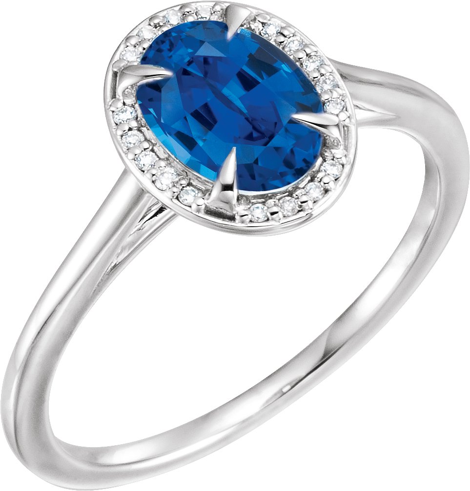 14K White 8x6 mm Oval Chatham Lab Created Blue Sapphire & .06 CTW Diamond Ring
