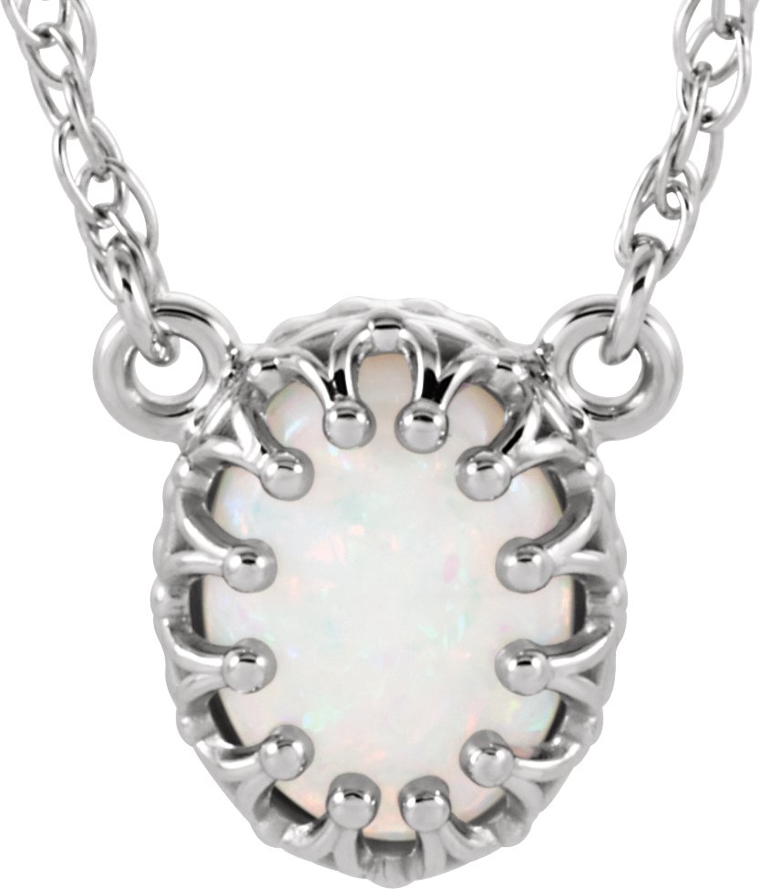 14K White 8x6 mm Oval Opal 18 inch Necklace