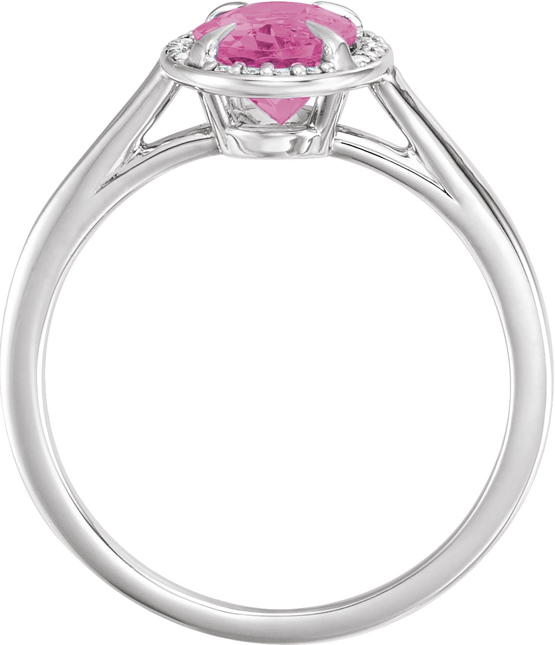 14K White 8x6 mm Oval Pink Tourmaline & .06 CTW Diamond Ring