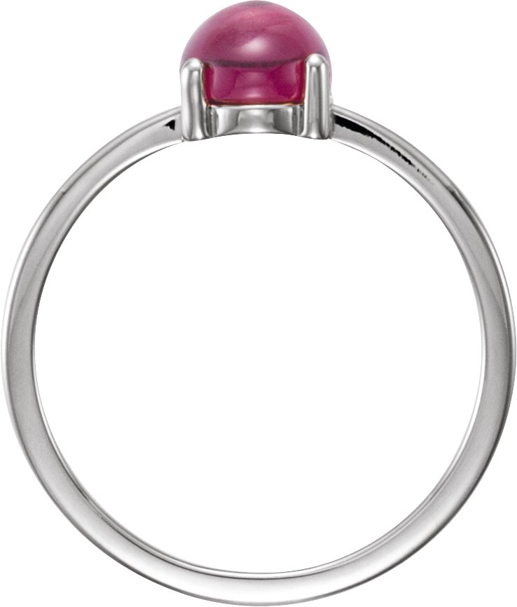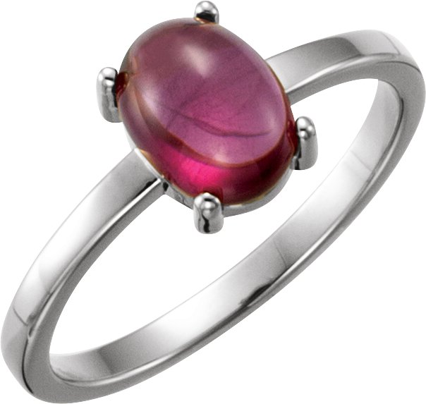 14K White 8x6 mm Oval Rhodolite Garnet Cabochon Ring
