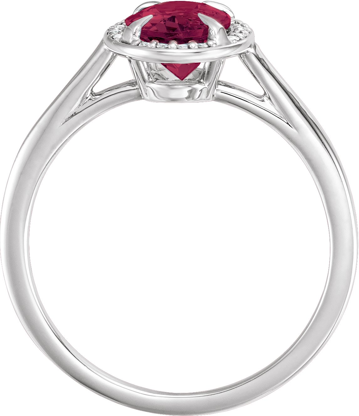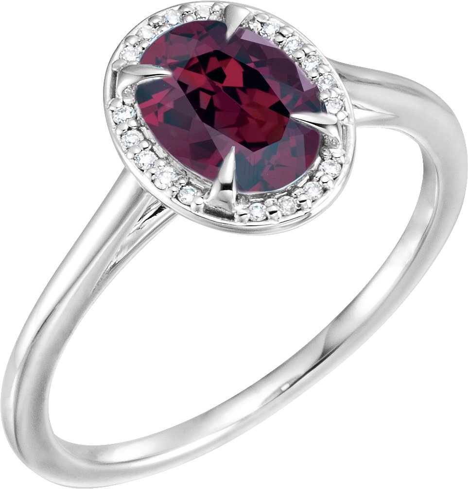 14K White 8x6 mm Oval Rhodolite Garnet & .06 CTW Diamond Ring
