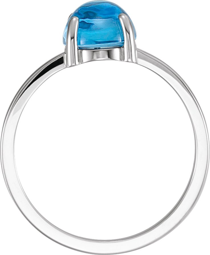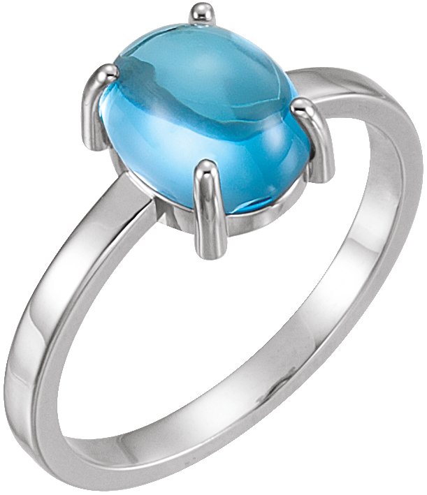 14K White 9x7 mm Oval Swiss Blue Topaz Cabochon Ring