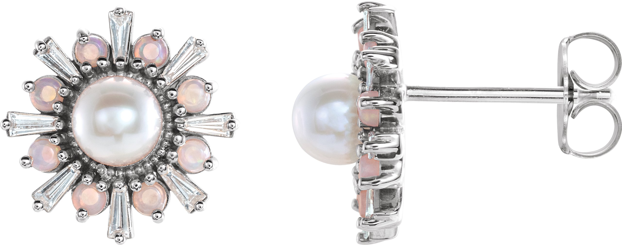 14K White Akoya Pearl, White Opal & 1/6 CTW Diamond Earrings