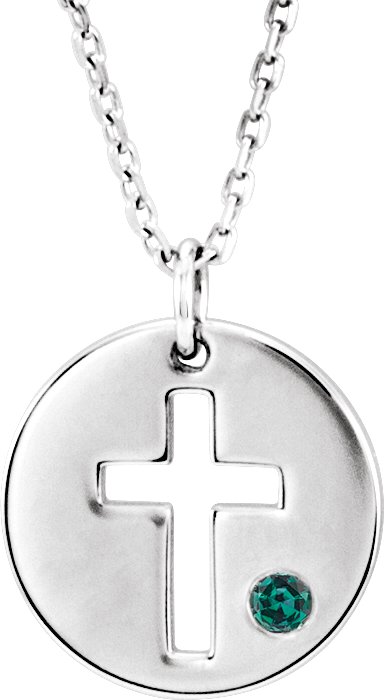 14K White Alexandrite Pierced Cross Disc 16 18" Necklace Ref. 13377634