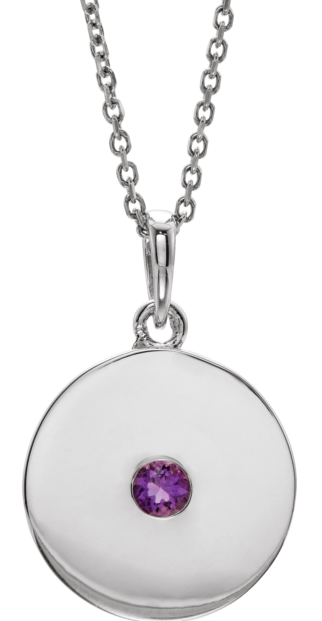 Description: Genuine Amethyst Disc Pendant Necklace