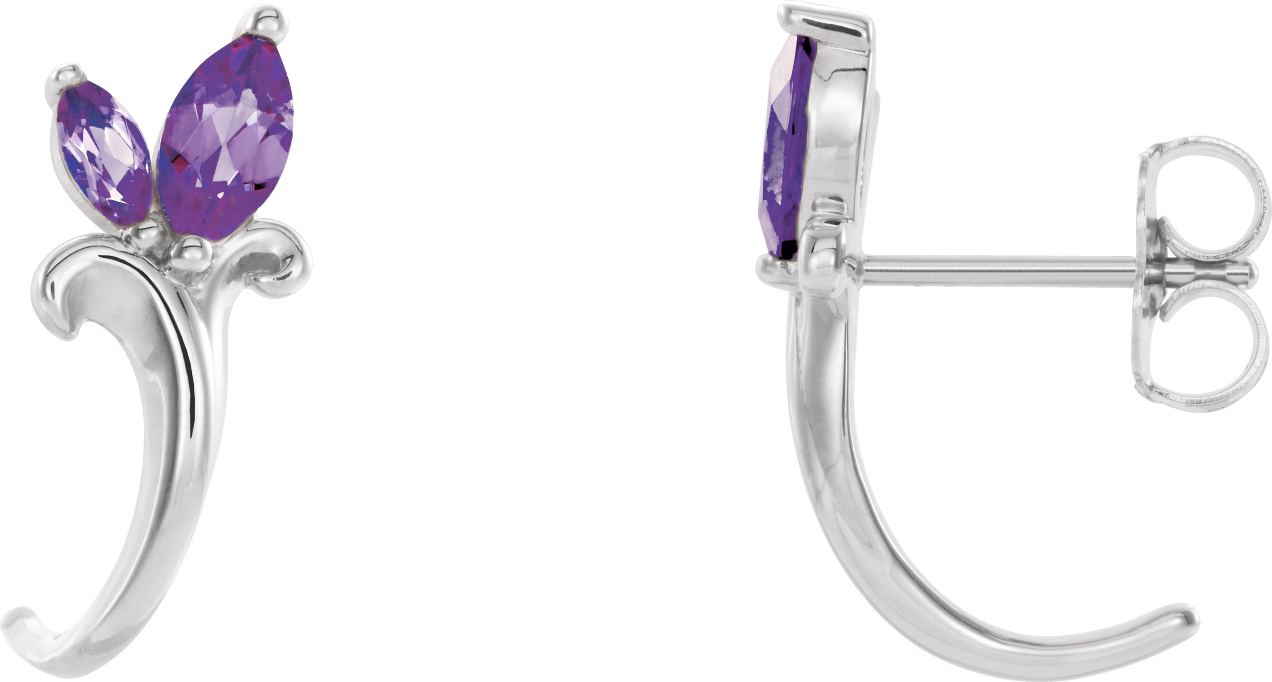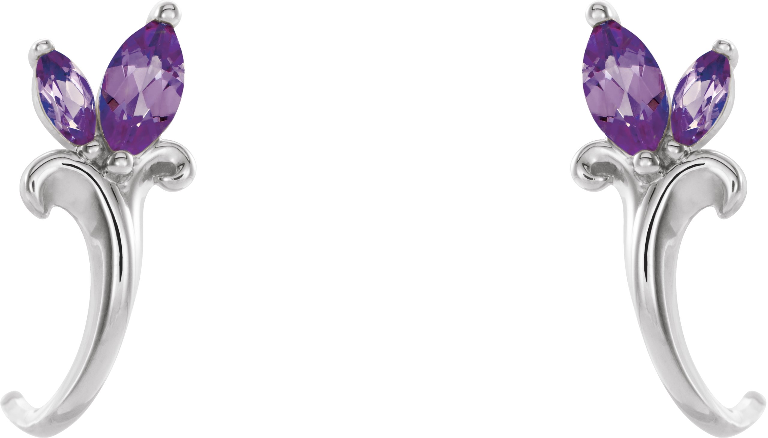 Description: Genuine Amethyst Floral-Inspired J-Hoop Earrings