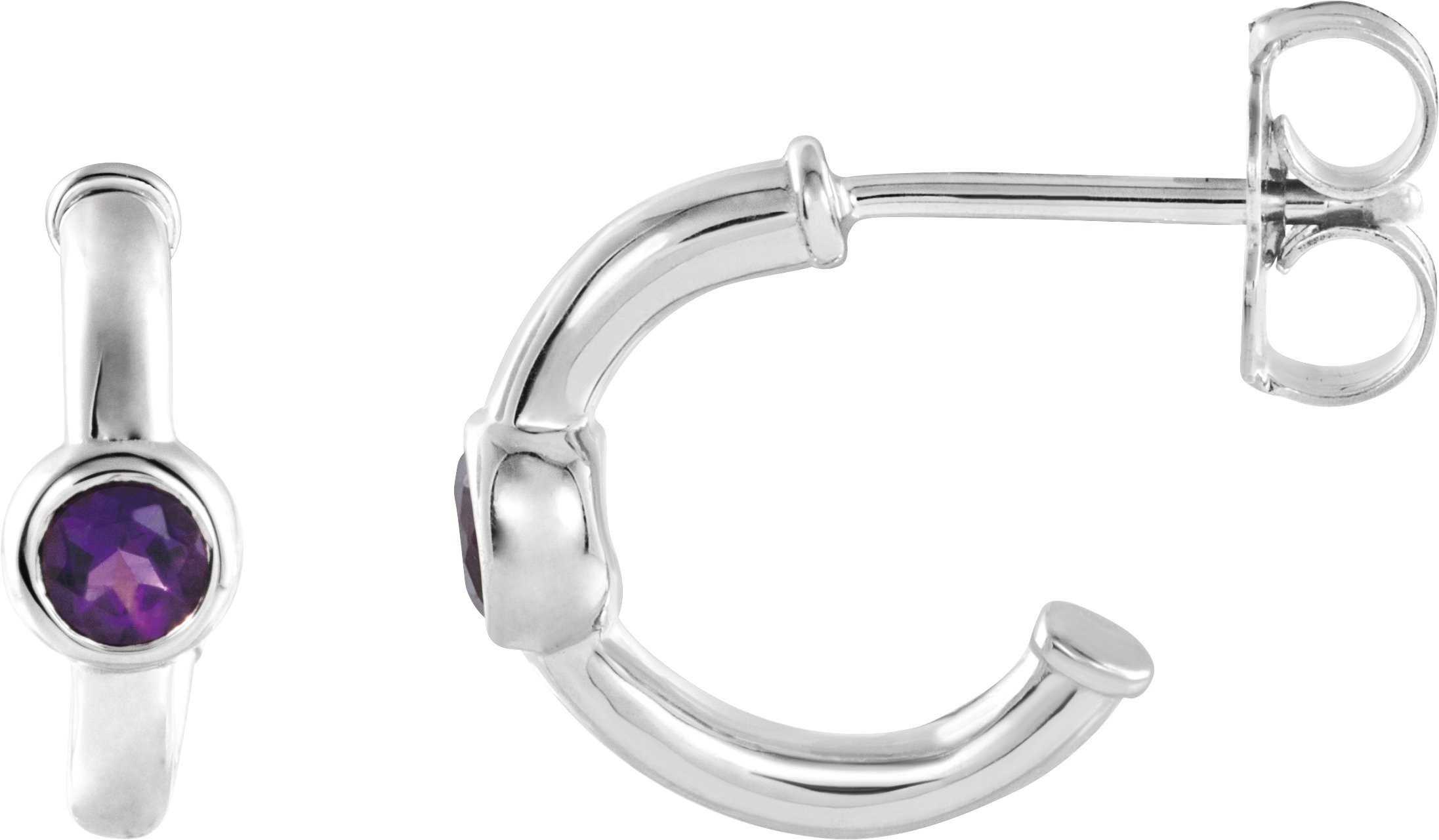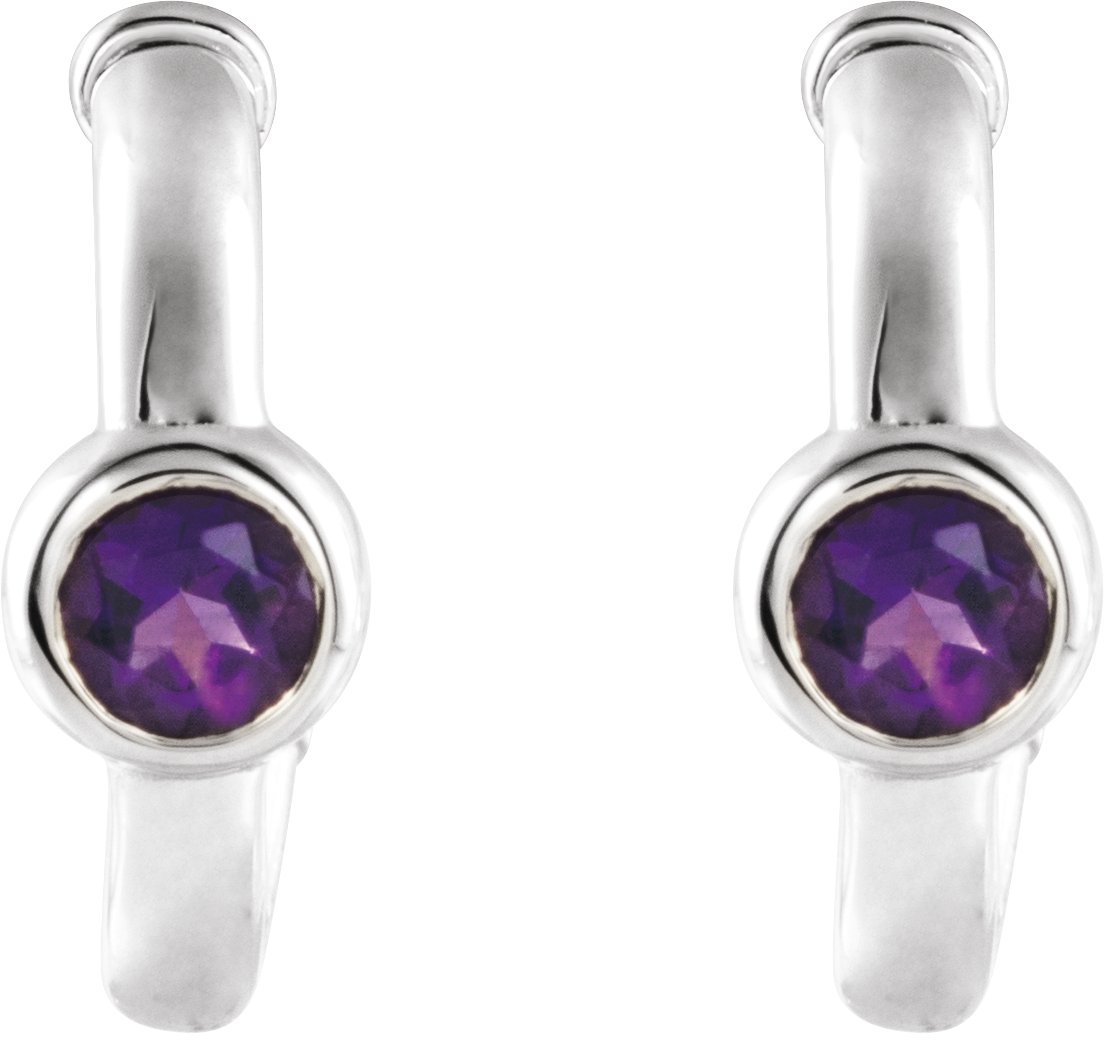 14K White Amethyst Hoop Earrings